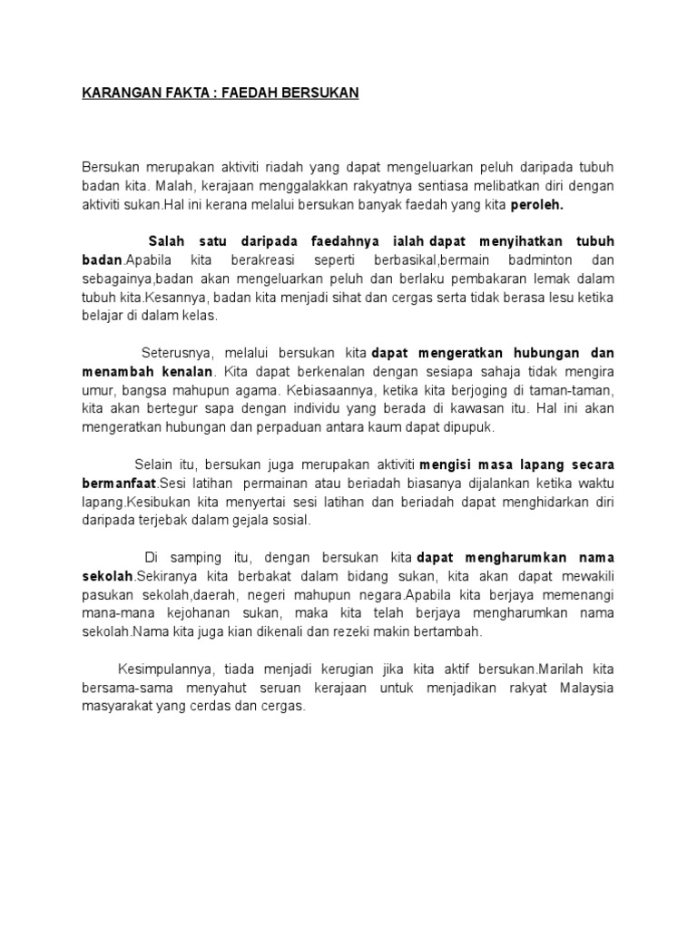 . Seseorang yang selalu bersukan badannya akan menjadi cergas dan kuat. Isi karangan kegiatan sukan. Karangan PT3 05.