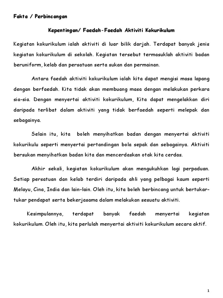 Selain itu hobi ini juga dapat menyihatkan tubuh. By Jo_Kinley906 14 Jun 2022 Post a Comment. Kesimpulannya terdapat banyak faedah menyertai kegiatan kokurikulum.